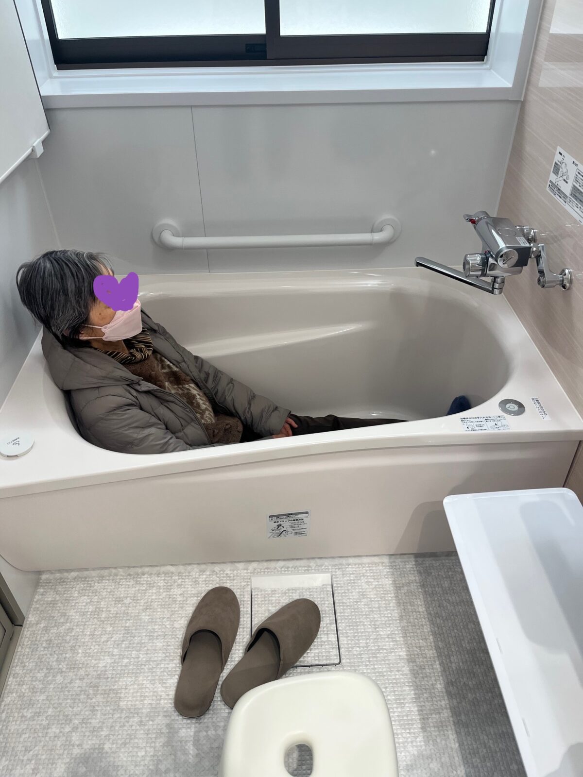 実際に浴槽内に座ってどのタイプがフィットするか体験していただきました。